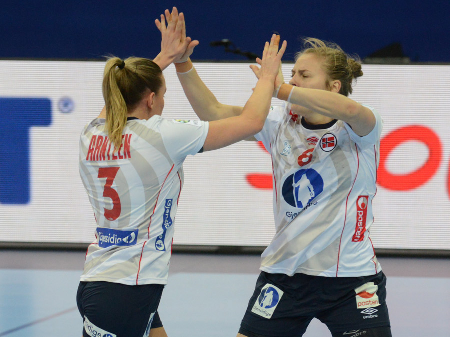 Nora Mørk 12; Marit Malm Frafjord 5; Camilla Herrem 4; Emilie Hegh Arntzen 3; Silje Waade 2; Veronica E. Kristiansen 2; Stine Bredal Oftedal 2; Kari Aalvik Grimsbø; Silje Solberg; Vilde Mortensen Ingstad; Amanda Kurtovic; Stine Ruscetta Skogrand; Kjerstin Boge Solaas; Marta Tomac; Sanna Solberg og Malin Aune.