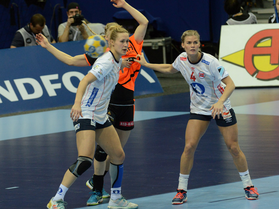 Marit Malm Frafjord og Victoria Kristiansen i norges forsvar. Foto: Terje Anthonsen