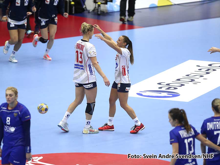 Nora Mørk 5; Veronica E. Kristiansen 5; Amanda Kurtovic 4; Stine Bredal Oftedal 3; Marit Malm Frafjord 2; Silje Waade 1; Emilie Hegh Arntzen 1; Camilla Herrem 1; Malin Aune 1; Kari Aalvik Grimsbø; Silje Solberg; Vilde Mortensen Ingstad; Stine Ruscetta Skogrand; Kjerstin Boge Solaas; Marta Tomac og Sanna Solberg.