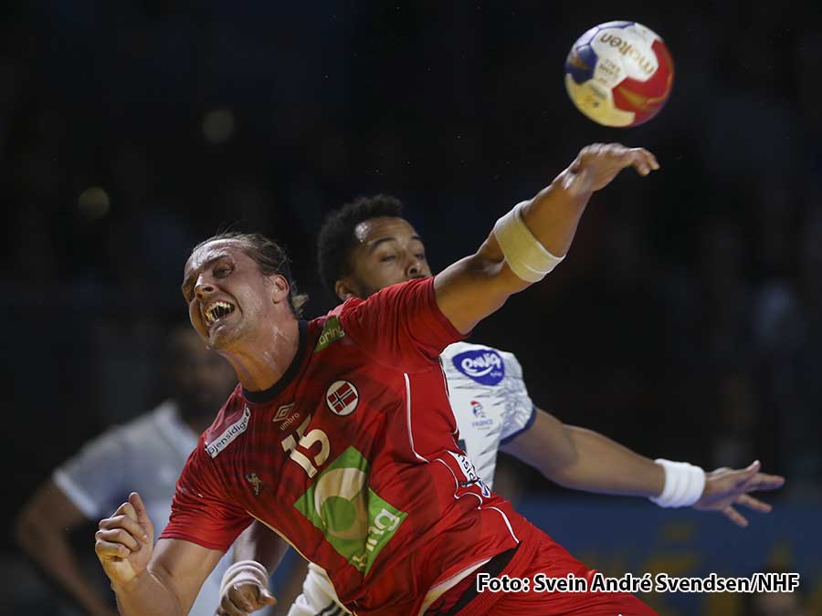 Etter å ha vunnet mot både Polen og Russland i gruppespillet, var det langt tøffere motstand som møtte Christian Berges menn søndag. VM-vertene Frankrike er også regjerende VM-mestere. Vinneren av kveldens kamp ville trolig også bli vinneren av gruppe A.