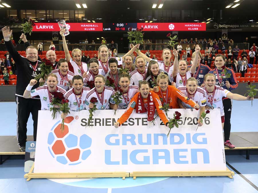 Larvik-jentene jublet med gullmedaljer for 13. gang på rad i serien. Foto: Svein André Svendsen