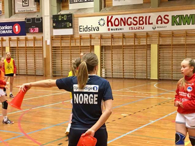 Treningen var variert og jentene fikk utfordret seg både i angrep og forsvar, i tillegg til noen ekstra øvelser for å trene og bruke kantspillerne var noe Malin brukte tid på. Økta ble avsluttet med en stafett der Minihåndballjente Emma satte spiker'n i kista for sitt lag.