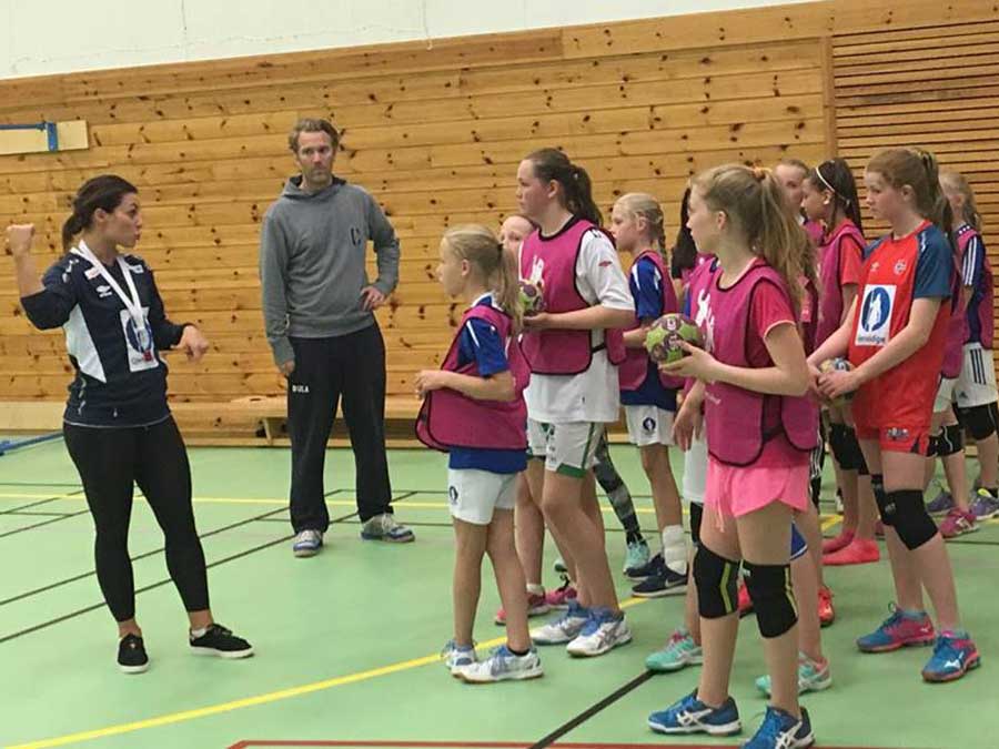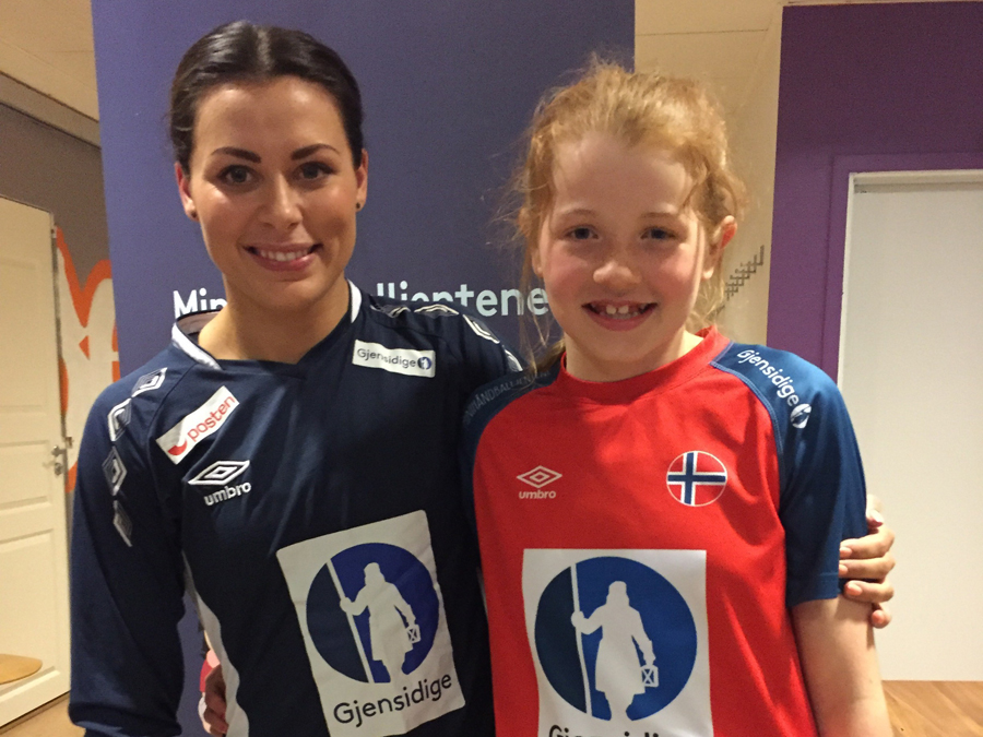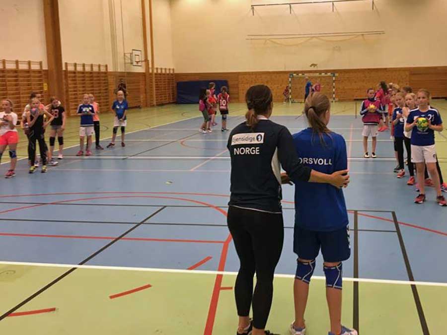 Kaja Tomasine Selboskar er en av årets Minihåndballjenter, og av den grunn kom hennes mentor, Nora Mørk, på besøk til Korsvoll på en treningskveld.
