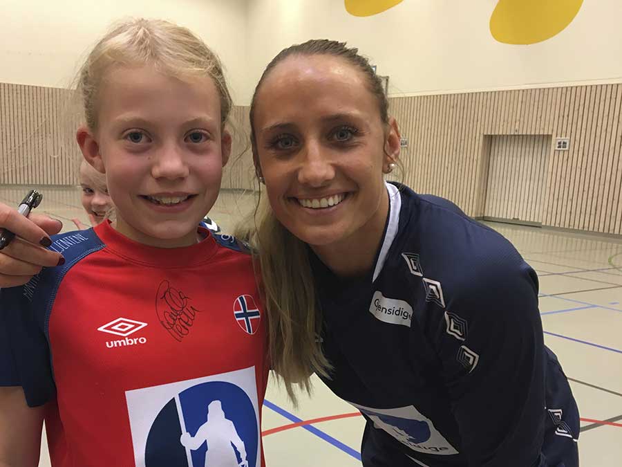 Etter trening åpnet Camilla opp for spørsmål fra jentene. Det var mange gode spørsmål og minst like gode svar. Seansen ble avsluttet med autografer og selfies.