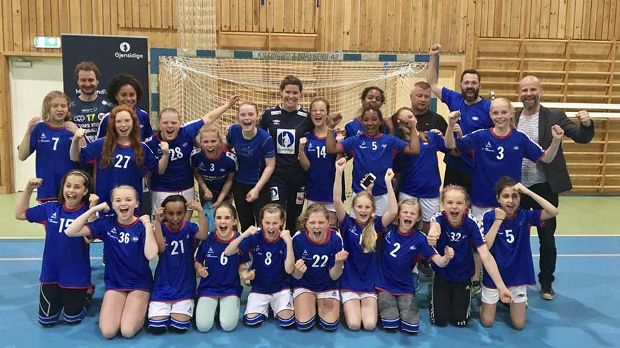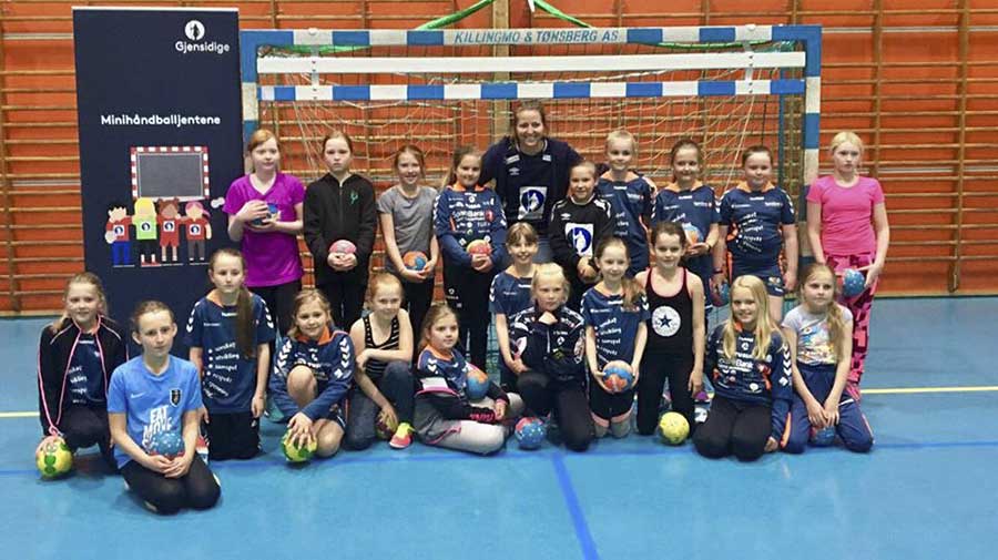 Fornøyde jenter, Camilla og ikke minst trenere, som tok med seg gode tips videre. Det ble også gitt en stor takk til Gjensidige som fikk dette i stand. Jentene fikk hver sin Gjensidige matboks og aktivitetskalender av Håndballjentene.
