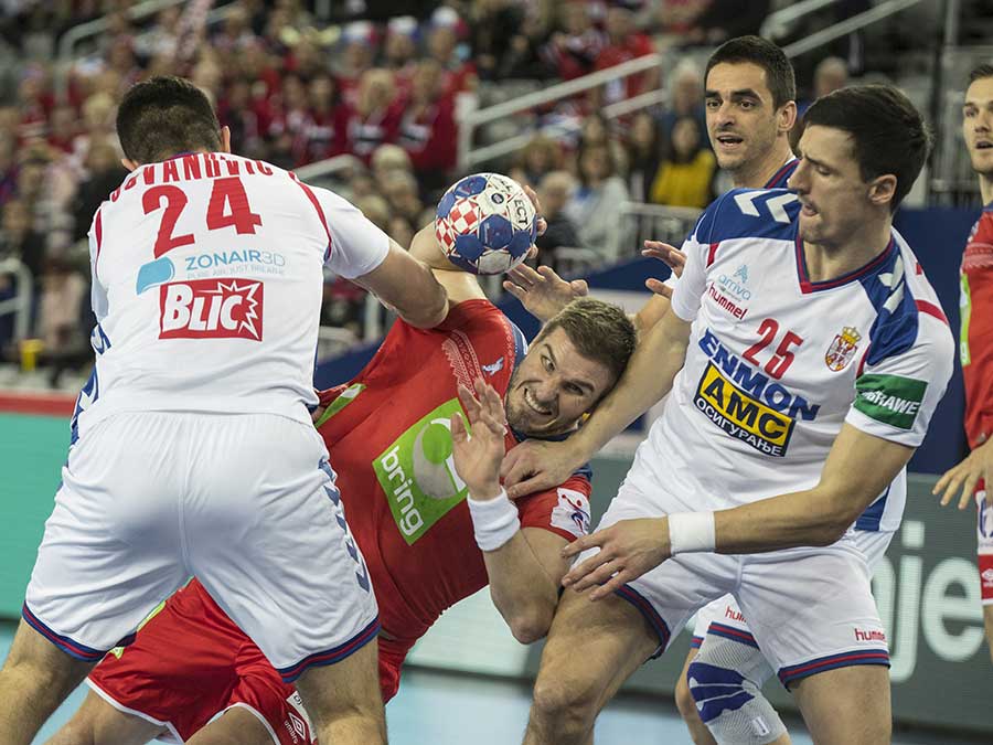 Espen Christensen kom inn i det norske målet mot slutten av 1. omgang, men Torbjørn Bergerud var tilbake da Håndballgutta kom fire-fem mål foran i løpet av de første minuttene etter hvilen. Forsvaret satt bedre i 2. omgang. Avstanden til Serbia varierte utover i omgangen, men de norske gutta trygget ledelsen gjennom omgangen til en viktig norsk seier. Det ble hele 17 baklengs før pause, men gledelig nok kun 10 etter hvilen.