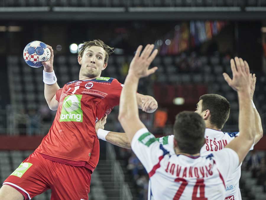 Serbia er den antatt svakeste av de tre motstanderne våre i hovedrunden. Norge vartet opp med flott angrepsspill, blant annet en flyver. Defensivt var det mer åpent fra starten av oppgjøret mot serberne. Etter 1. omgang var lagene like lang, på stillingen 17-17.