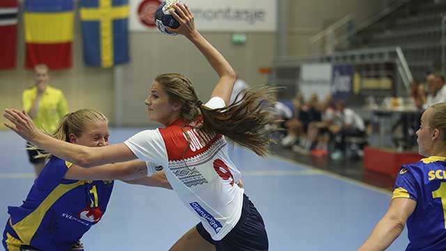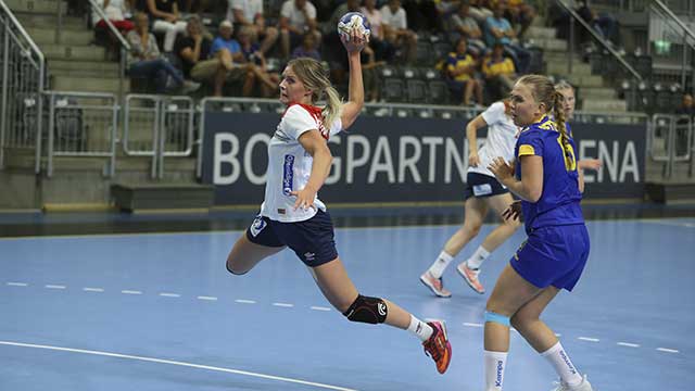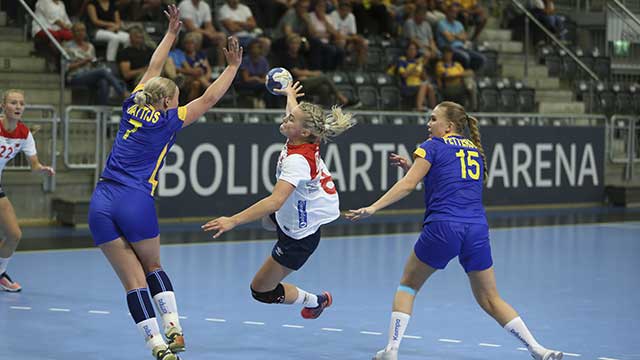 De norske jentene fikk en behagelig ledelse gjennom første omgang mot svenskene, som tapte for Romania i åpningskampen.