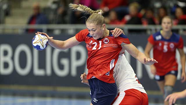 I 2. omgang ledet Norge helt til det gjensto ett minutt. Etter flere sjanser til å avgjøre alene med målvakt, utliknet danskene. Helt på tampen kunne de også vunnet, men en flott dobbeltredning av målvakt Sofie Ege Grønlund hindret det.