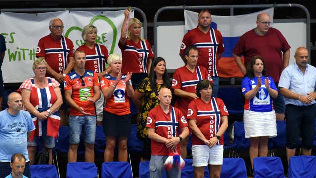 Norske supportere på tribunen i Celje. Foto: Slavko Kolar