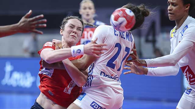 Det ble kamp til siste minutt i oppgjøret mellom Norge og Frankrike i Golden League. Ingvild Bakkerud fikk tillit fra start og bidro til at Norge tidlig tok føringen med sine tre fulltreffere. Midtveis i omgangen ledet Norge 8-5. Etter en periode med flere tekniske feil og fem raske scoringer fra hjemmelaget, mistet de norske jentene grepet om kampen og etter 21 minutter var lagene likt på 8-8. Frankrike tok over føringen og gikk til pause med en ettmåls ledelse på stillingen 11-12.