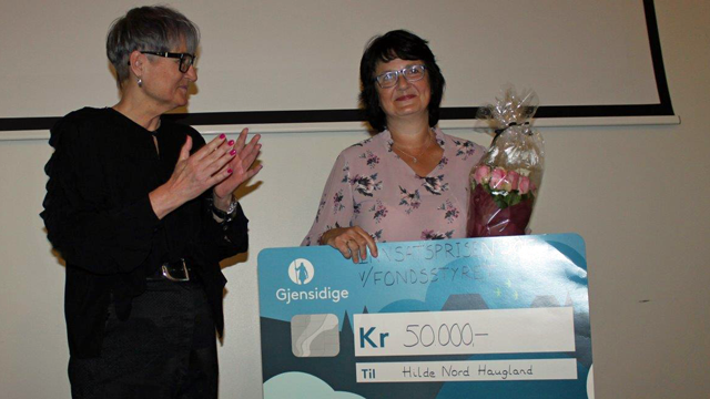 Prisen på kr 50 000,- ble overrakt av leder av Fondsstyret i Asbjørn Henriksens Fond til Håndballidrettens fremme, Nina Britt Husebø, på Klubbkonferansen i Bergen siste helgen i april.
