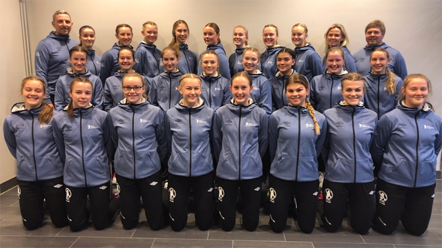 Midtre rekke fra venstre mot høyre: Emilie Gullachsen (Gneist), Thea Iversen (Bjørnar), Stine Silden (Bjørnar), Pia Erichsen (Fyllingen), Emma Lothe (Gloppen), Othilie Håland (Dale), Michelle Olsen Lunde (Bønes), Joanna Kveen Øvre-Flo (Stryn), Nina Lazic (Fyllingen), Maja Brandt Rasmussen (Bergen HK), Avril Frei (åsane)