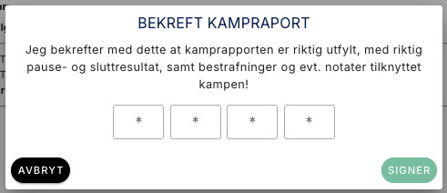- Sørge for at dommere godkjenner og signerer kamprapporten med PIN-kode.