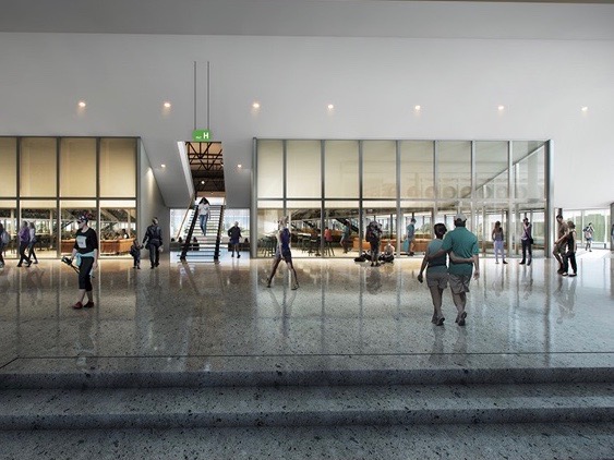 Vrimleområdet i den nye storhallen slik planleggerne mener det kan bli. (Illustrasjon: LINK SIGNATUR)