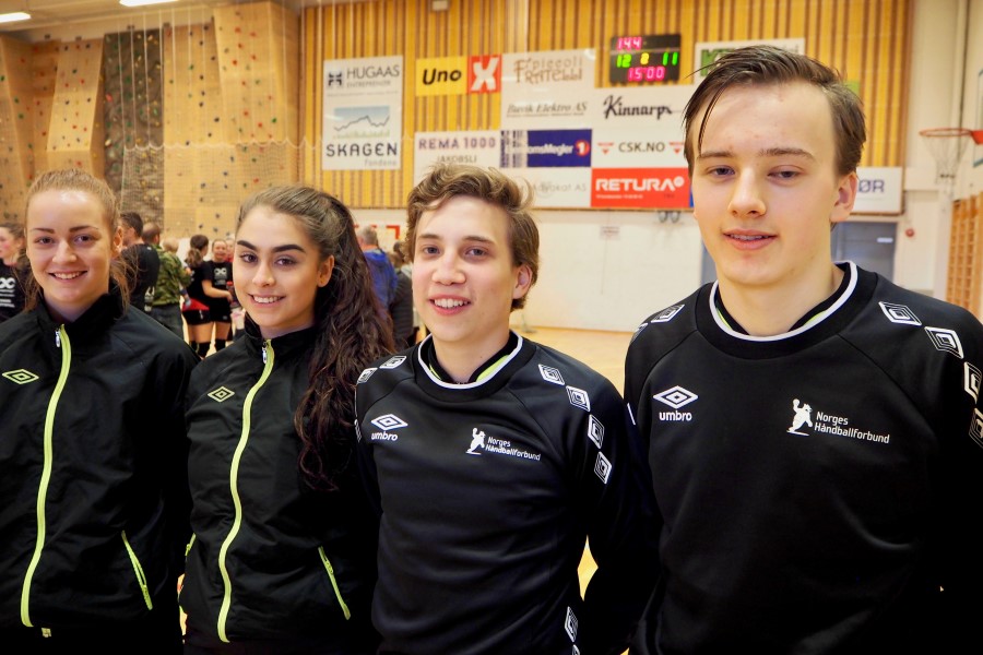 Fra venstre; Arja Døsvik, Tina Raustein Valaker, Jonas Johnsen og Thomas Brix. Jentene dømmer for Ranheim og guttene for Charlottenlund.