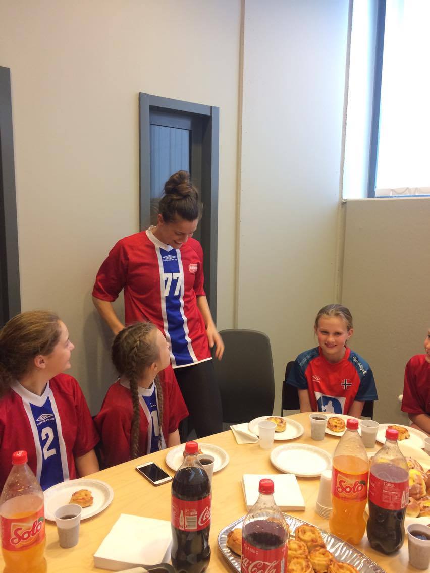 Det var en liten bekymring blant jentene om at Stine ikke ville like Trondheim ettersom det regnet denne dagen, men hun forsikret dem om at det fikk hun til å føle seg mer som hjemme. Det var mye latter, glede og god stemning i rommet, og det var tydelig at besøket ikke kunne vært mer motiverende og verdifullt - ikke bare for Sofie - men også for resten av laget og klubben.