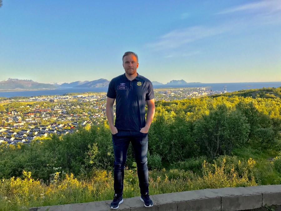 Endre fotografert ved Turisthytta og med Bodø i bakgrunnen. (Foto: Privat)