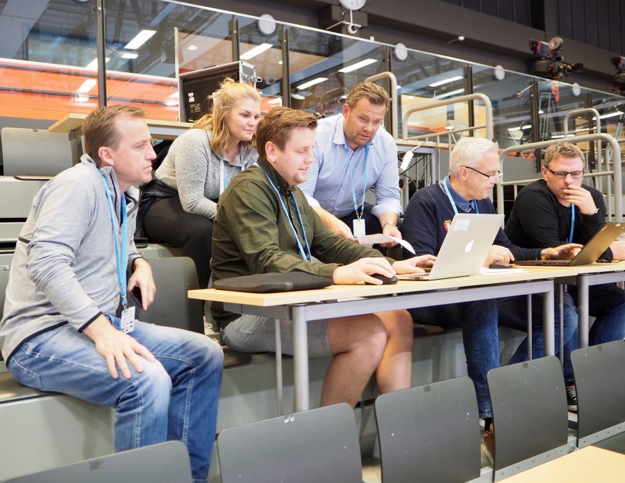 Landskamper skal dokumenteres til minste detalj. "Plotterne" gjennomgår rutinene før kampen.