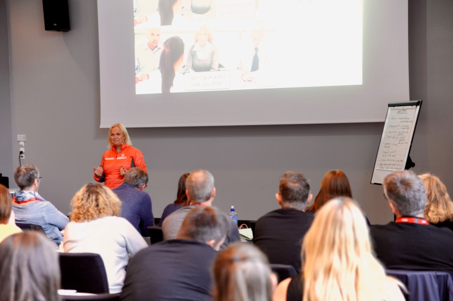 Parallelt med meningsfylt trening satte Gro Eide, (bildet over) coach og rådgiver, søkelys på teamarbeid og hvordan gjennomføre det; om rolleavklaringer og forventninger til hverandre i et lag – for å nevne et par av momentene.
