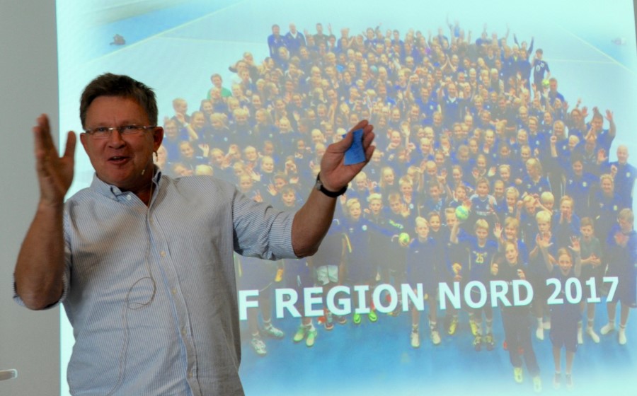 Presidenten selv, Kåre Geir Lio, (bildet over) hadde for så vidt fått et takknemlig oppdrag når han skulle fordra om hvordan skape begeistring og klubbens rolle i dette arbeidet. Det er få i håndballriket som kan skape begeistring på et underholdende vis som presidenten selv. Og på lørdagen ble presidentens innlegg avsluttet med Jørgen Hattemaker - som allsang. Faktisk aldri så lite vakkert...