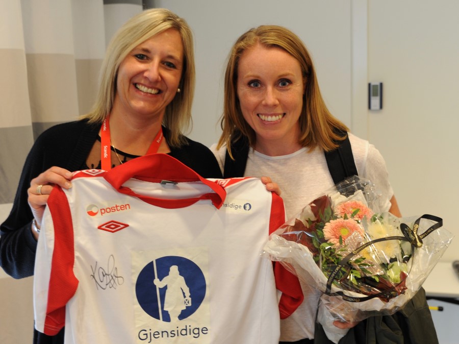 Wenche Sunde fra Rissa var heldig vinner av landslagsdrakt signert av "Karo", Karoline Dyhre Breivang.