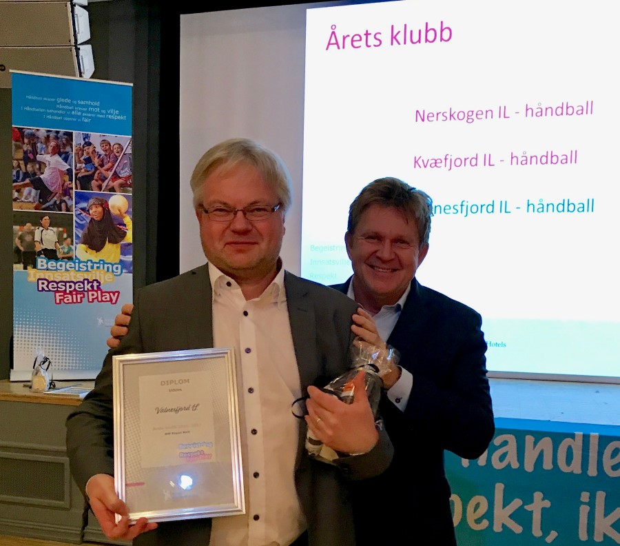 Torbjørn Thrane Jensen, soneleder for Salten, tok imot prisen på vegne av Velnesfjord IL.