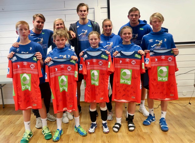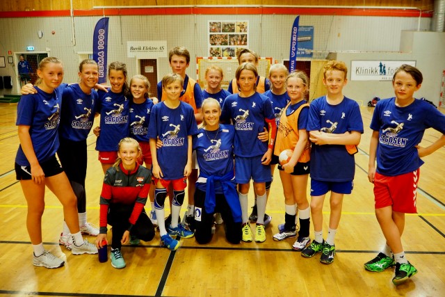 Deltagerne på Camp Sagosen ble delt inn i fire grupper. Ved avslutningen søndag fikk én av spillerne på hver gruppe en landslagsdrakt, mens spilleren som ble kåret til MVP (most valuable player) fikk i tillegg en Paris St. Germain-drakt og to billetter til en landskamp. På bildet ser vi foran fra venstre "All Star-laget"; Linus Mork-Johansen, Martin Sydnes, Julie Eriksson og Ingrid Ibsen. Lengst til høyre, Martin Wang, MVP.