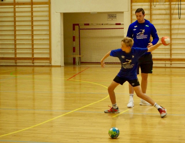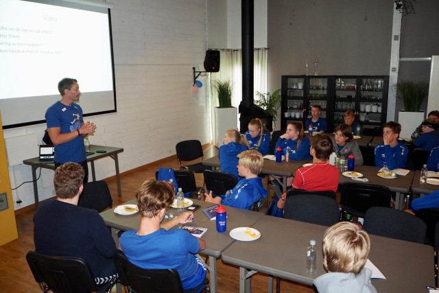 Og det har ikke manglet på kvalifisert veiledning og trening: Håndballguttas sjef, Christian Berge, bidro både med teori og praksisøkt. Kolstad-guttenes sjef, Stian Gomo, var også i aksjon, og med hele campen var i tillegg til Sander toppspillerne Magnus Abelvik Rød, Simen Schønningsen, Moa Høgdahl og Hanna Bredal Oftedal. – Det handler om å gi ungdommene kvalifisert påfyll hele tiden, sa Sander. Selv var han både instruktør på gulvet og fullt opptatt med tv- og video-opptak.