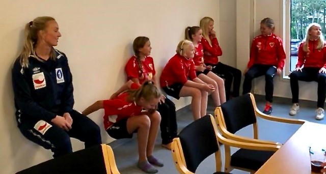 Besøket var siste del av “premien” som følger med å bli tatt ut som Minihåndballjente for ett år.