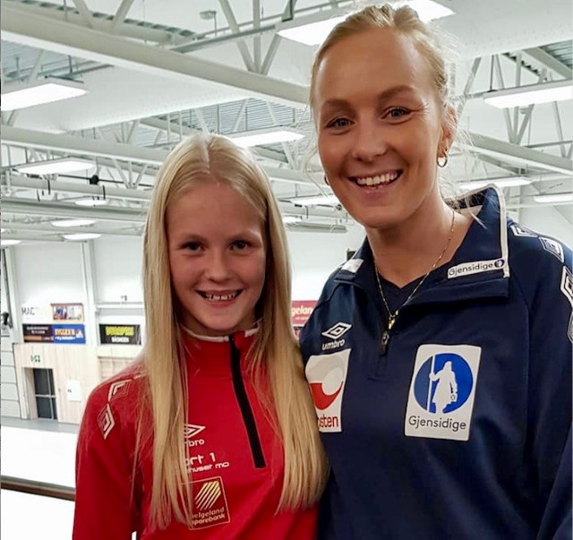 Maja sammen med sin håndballjente, Emilie Christensen.