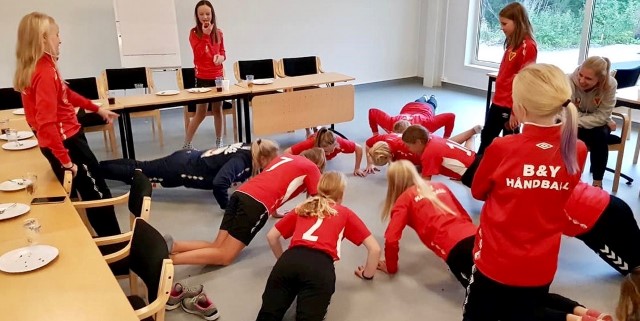 B&Y-jentene utfordret Emilie både til 90-graderen og armhevinger...