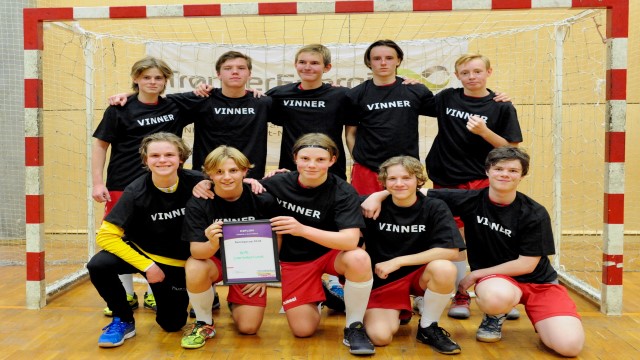 På vinnerlaget spilte: Marius Hatlen Nøst, Gabriel Nyhagen, Eirik Danielsen Mork, Mads Myklebust, Jørgen Groven, Olav Hansen, Niklas Sandnes Laugen, Haakon Gjestad, Jesper Terje Vold, Vegard Lervik Lie, Greger Reitan, Hogne Lid Bretten og Lars Linus Högdahl. (FOTO: Robert Magnussen)