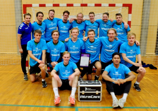 TILLER var den mest suverne finalevinneren med 23-11 over Bergsøy i nivå A-finalen. På vinnerlag - foran f.v.: Kennet Pedersen og Tage Nielsen. I midten f.v.: Andreas Gundersen og Simen Martinsen. Bak f.v.: Martin Sandnes, Fredrik Lysfjord, Morten Molid, Elias Berge, Stian Pettersen, Simon Kvam og Erlend Ressum.