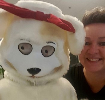 Kari Anne-selfie med Line (Labb&Line-maskotene til