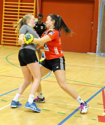 Trening på finter, gjennombrudd, over bøyler, forbi forsvarsspillere. Temposkifte og retningsendringer, to mot én, tre mot tre og til slutt en fem minutterskamp – jenter mot gutter. Den ble jevnspilt...