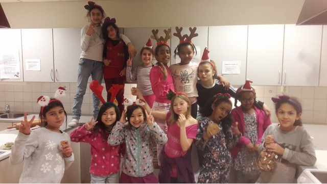 Juleavslutning i 2018 (over). Camilla organiserte pepperkake-baking – noe helt nytt for jentene hennes – like nytt som påskeegg og påskegodis til påskeavslutningen (under). «Og da vi hadde fått tak i bagger og drikkeflasker til alle, da ble jentene så glade at noen av dem begynte å gråte,» forteller Camilla. Tipper også at hennes sjokoladekake smakte veldig godt. (Foto: PRIVAT)