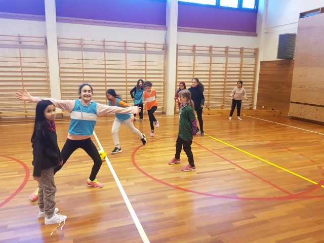 Da lederen for samarbeidsprosjektet for innvandrerjenter mellom skole, mottak og klubb reiste fra byen, ble Camilla bedt om å overta «fargerik håndball». Det sa hun ja til, takk og pris! Engasjert, motivert, og fargerik selv, også med sine fargerike tatoveringer, som sikkert gjør mange av jentene nysgjerrige?