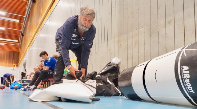 Jeg antydet tidligere at «Byåsen-bjella» nå et par år har fått hvile seg. Årsaken er at siden januar i 2017 har Odd fungert som oppmann for elitelaget, dugnadsjobb det også. Han får bare dekket sine utgifter, ingen lønn. «Og det har jeg stor forståelse for,» sier Odd selv. Det er så visst ikke pengene som gjør at han står på dag ut og dag inn for klubben i sitt hjerte. På hver eneste trening er han i god tid i hallen og sørger for at alt utstyret er på plass. – Akkurat nå er vi inne i en periode hvor vi ikke har fast treningssted og derfor også mangler en fast plass til alt utstyret vi trenger på treningene. Derfor må jeg ha det i bilen min, forteller Odd.