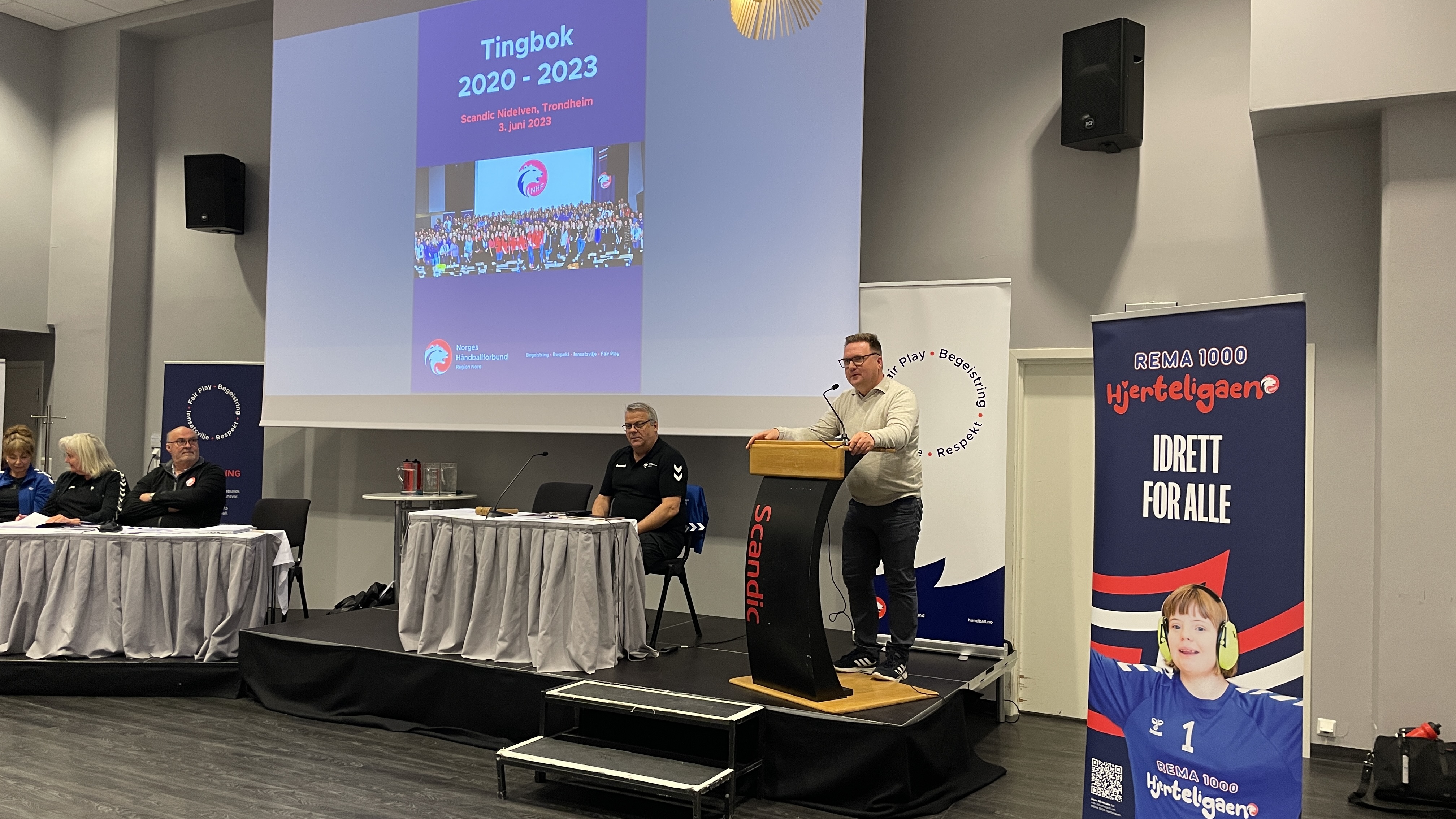 13:15 Jan Martin Møller fra NHF Forbundsstyret og Even Myhre fra Trøndelag idrettskrets har kommet med sine hilsninger til Regionstinget.