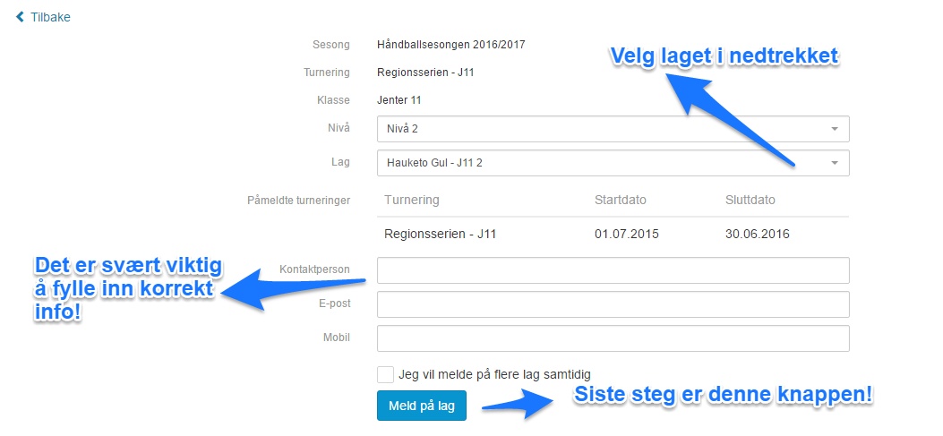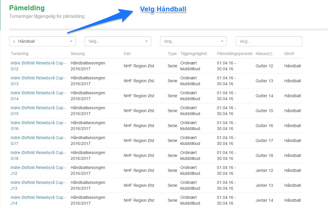 Påmelding av lag i Region Øst kan gjøres av Leder eller Daglig leder i klubb. Vi har under her forsøkt å vise hvordan det fungerer i "TA".