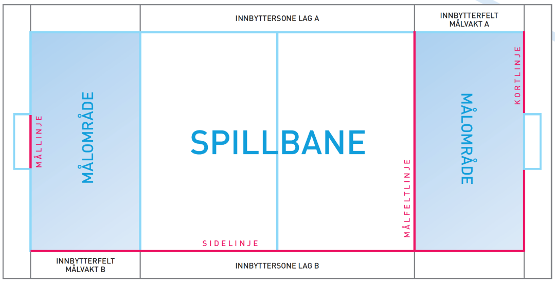 1 spillebane (27 x 12 meter) med vanlige håndball gummiball