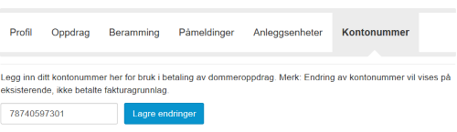 Det kontonr en ønsker at betaler (klubb) skal betale inn beløpet tilknyttet dommerregningene, må en legge inn i din dommerprofil i TA.