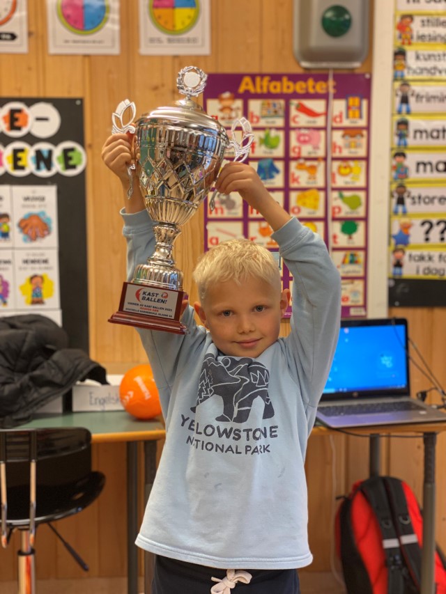 Marianne fra regionskontoret fikk gleden av å gi Georg den store flotte pokalen, sammen med at hver elev fikk hver sin hummel-ball. I tillegg ble det feiret litt ekstra med popcorn og saft denne tirsdagen. En minneverdig tirsdag i klasse 3A på Stathelle barneskole