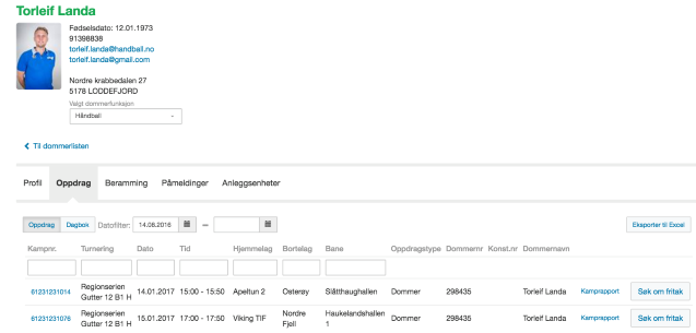 Gå inn på din Dommerprofil og trykk på Oppdrag: