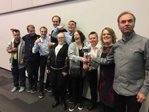 Under ser dere de glade spillerne samlet med den flotte pokalen.