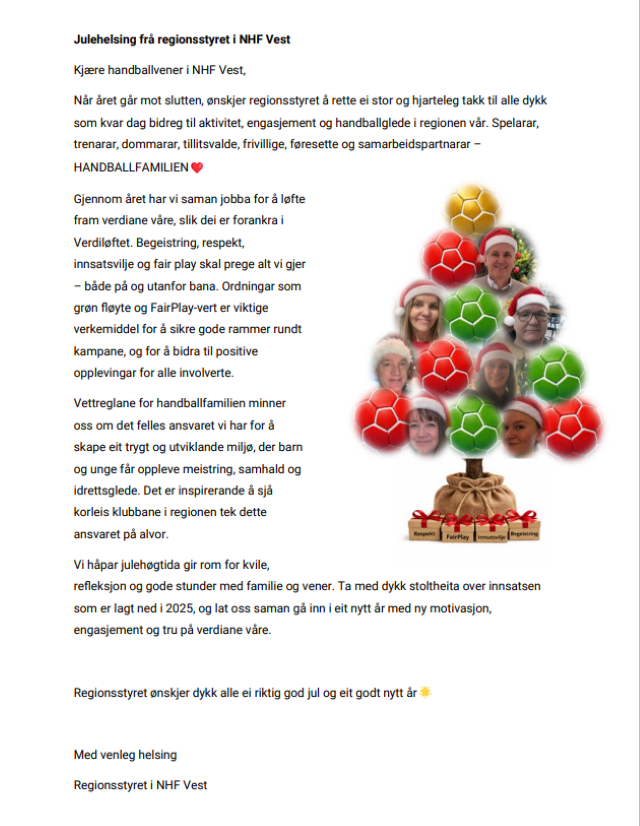 Kjære handballvener i NHF Vest, Når året går mot slutten, ønskjer vi å rette ei stor og hjarteleg takk!