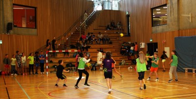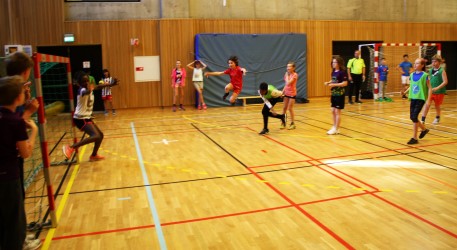 I Ny Krohnborghallen var det to mindre håndballbaner, hvor de spilte med de minste håndballmålene. Dermed ble de gode deltakelse fra alle på banene og spennende keeperspill. NHF Region Vest stilte med dommere, som til tider var mer veiledere enn dommere. I hallen startet de eldste elevene med håndball. Både på tribunene og langs de to banene fulgte ungdommene spent med på sine klassekamerater. Det var tydelig at noen gutter og jenter har spilt og spiller håndball, og de var flinke til å hjelpe sine lagkamerater som kanskje ikke har spilt håndball før. Ikke minst bidrar alle våre tre dommere til en positiv håndballopplevelse for alle gjennom veiledning i dømmingen. Det er ingen tvil om at dette var et spennende avbrekk for alle skolelevene og lærerne.
