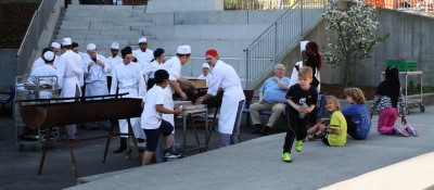 Ny Krohnborg har også samarbeidet med Årstad Videregående skole sin kokkelinje om å serve hot-dog fra grill til alle deltakerne under turneringen. Lunsjen ble servert like ved Krohnsminde Idrettsplass og Årstad Videregående skole, til alle barna og ungdommenes store begeistring.