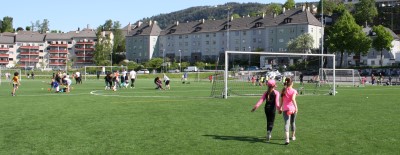 På Krohnsminde var banene delt inn i to mindre fotballbaner, med 7-er mål til. Det var de yngste elevene som startet med fotball og det var tydelig at alle koste seg i solen på Krohnsminde.